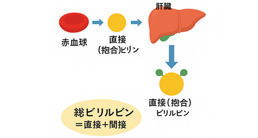 - 直接(抱合)ビリルビン(D-Bil):肝で水溶化され、尿や胆汁に出やすい型。