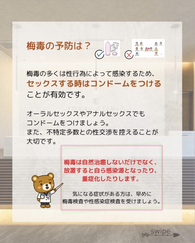 それ以上に不特定多数の人とパートナーにならないこと、お互いにとってそれぞれが唯一のセックスパートナーであることなどを遵守することで性感染症は予防可能です。