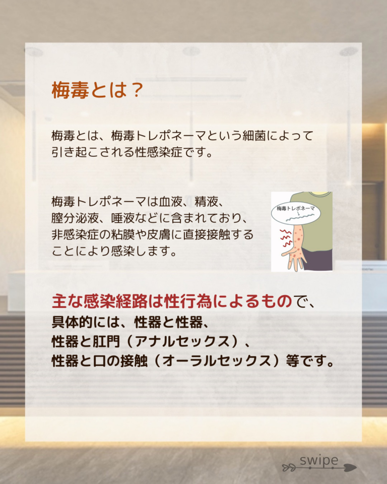 梅毒は早期に発見して、適切な治療を行うことで治癒が可能です。